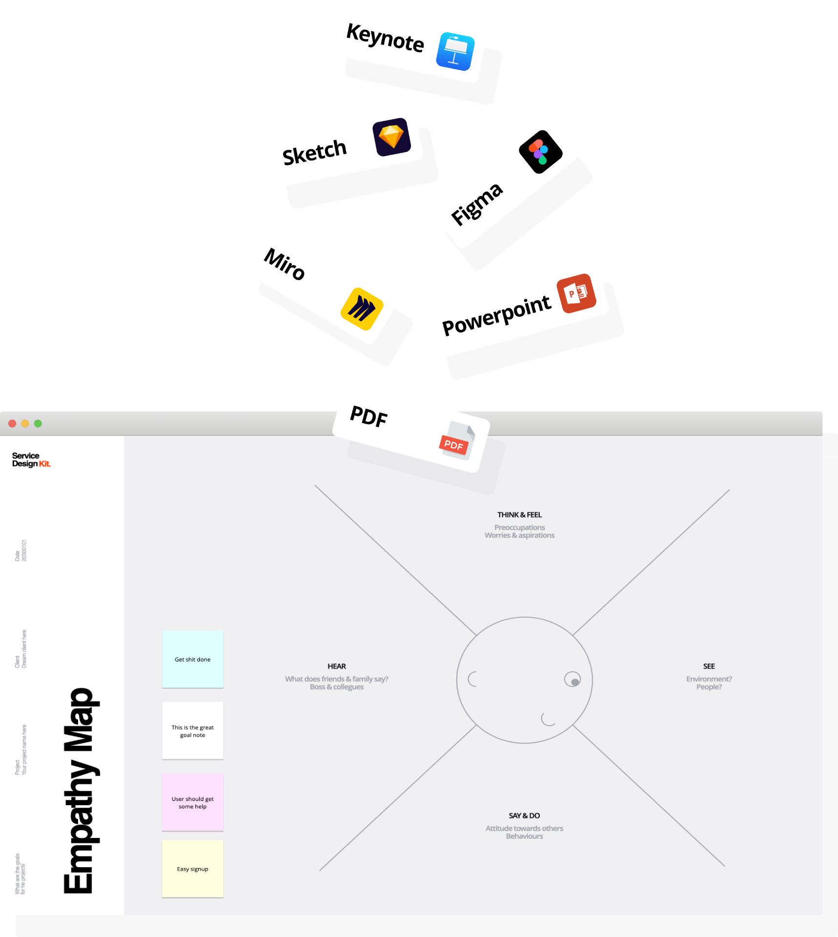 You'll get all the service design tool templates you need to build great services. Perfect for product and service designers of all levels, this beautiful template stack comes ready to use - simply add your own logo and get to work.